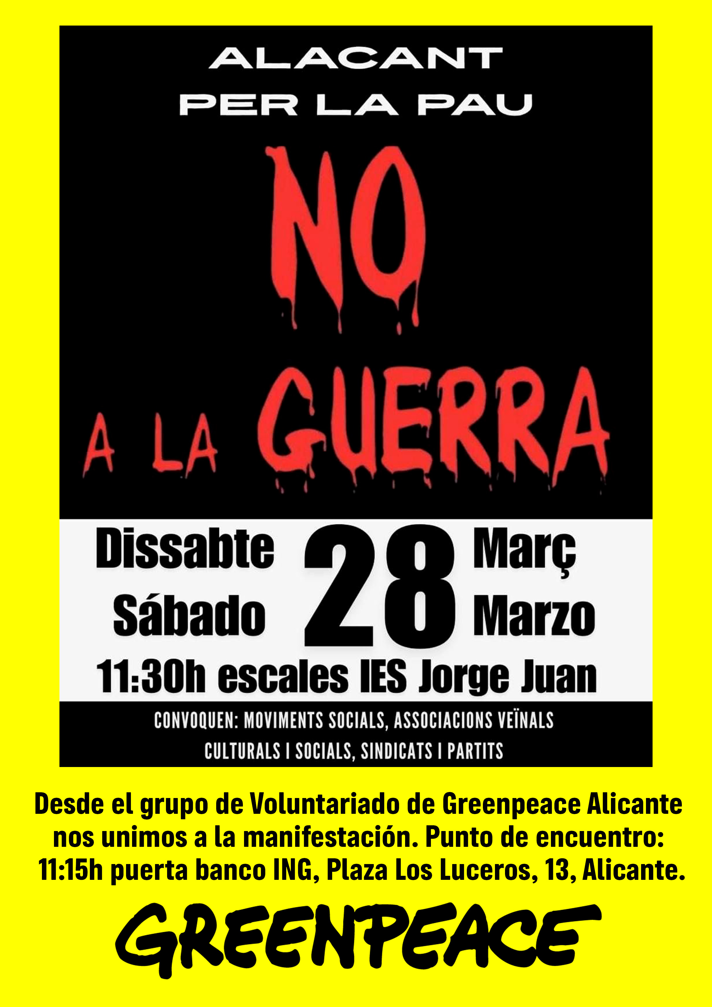 Vamos a participar como asociación en la manifestación de Alicante que se celebrará el próximo sábado. ¡Necesitamos manos que nos ayuden a llevar la pancarta que vamos a elaborar!. Podrán venir todos los voluntarios/as, socios/as, así como amigos y familiares que quieran acompañarnos.