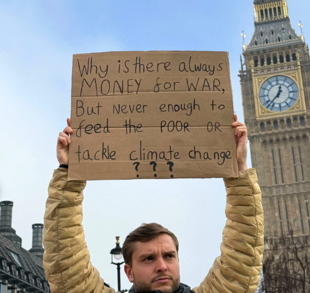 Hay una idea específica de lo que queremos, basada en unas publicaciones de Greenpeace Internacional y GPUK. Consiste en combinar mensajes sobre la guerra pero conectando esta con el oligopolio, la crisis climática o el poder fósil. Estos carteles los haremos en cartón y rotuladores.
